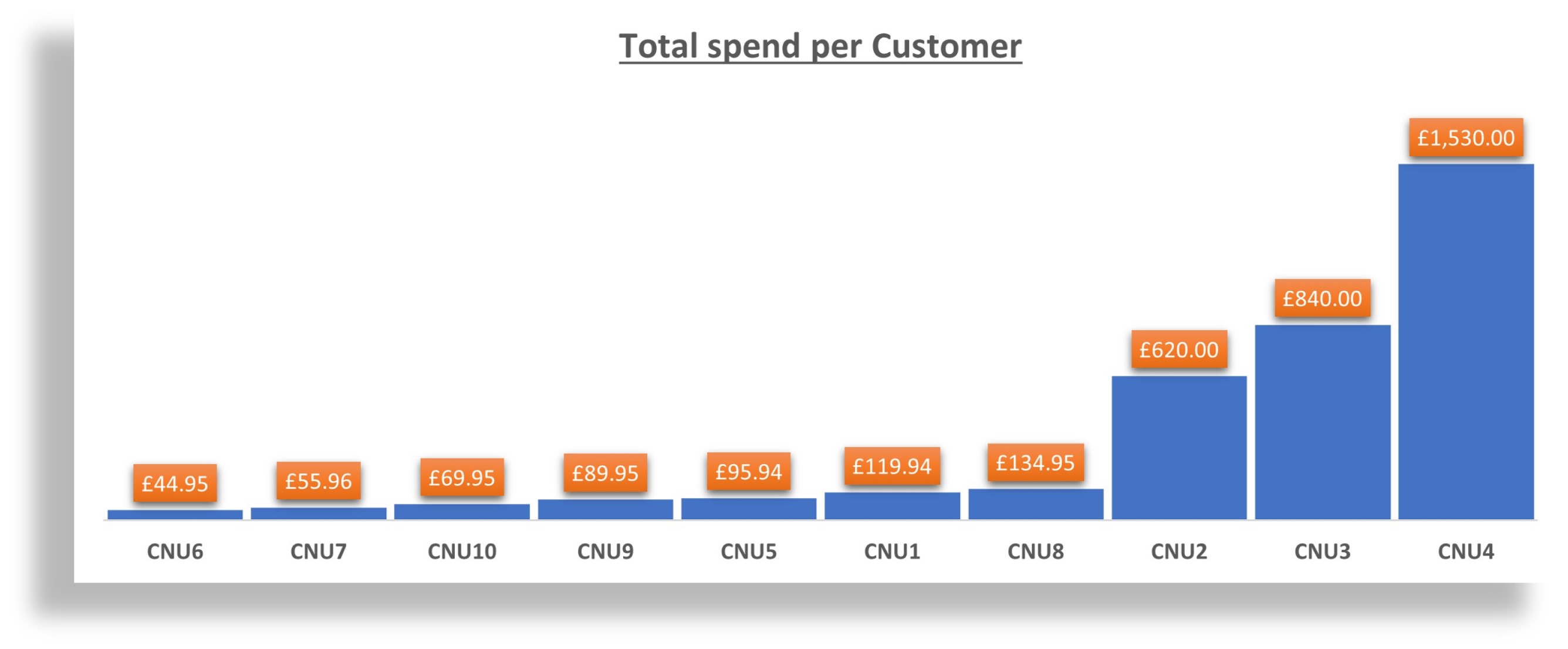 Table 2 - Contain four columns and ten rows. Heeding in the table includes customer information Customer Number, Customer Name & Surname, Customer Phone number, and Customer Address. Only one formula was used to create a unique customer number the remaining data was generated by the website which generate fake names, surnames, phone numbers, and addresses (British name generator, 2022).